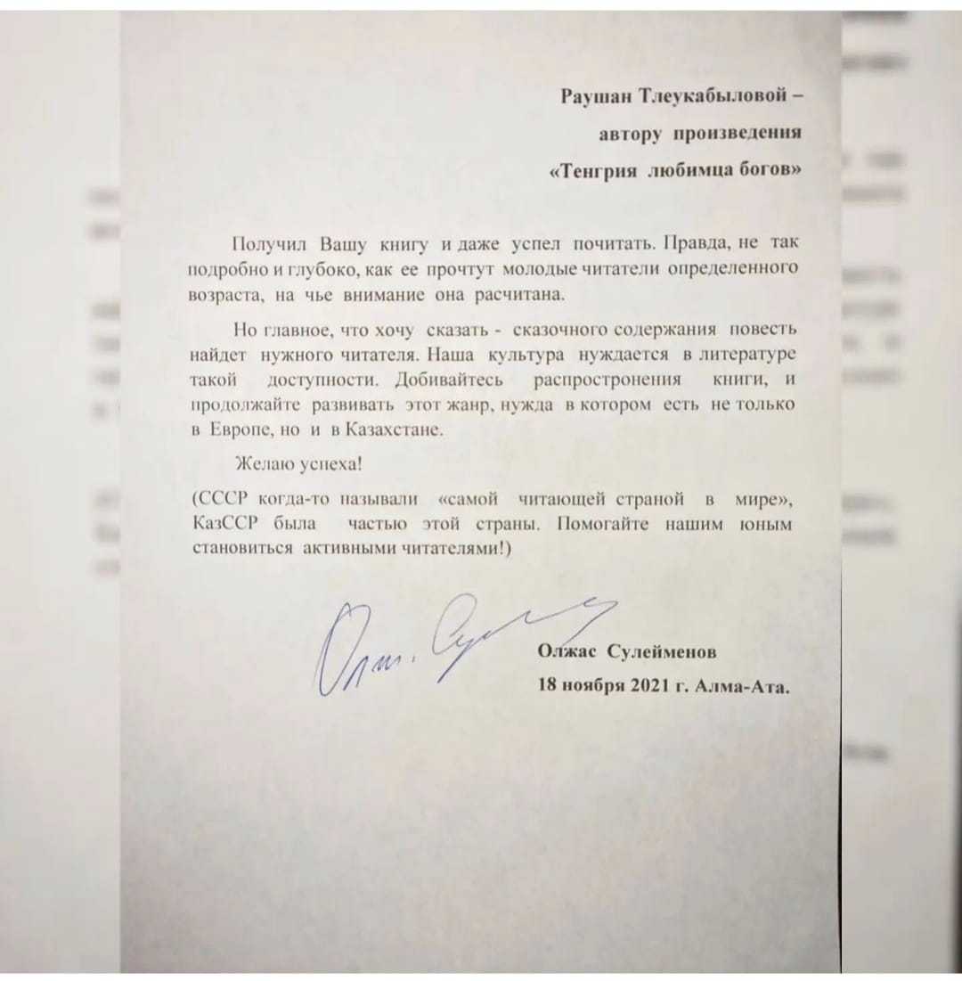 Получил Вашу книгу и даже успел почитать. Правда, не так подробно и глубоко, как ее прочтут молодые читатели определенного возраста, на чье внимание она рассчитана. Но главное, что хочу сказать – сказочного содержания повесть найдет нужного читателя. Наша культура нуждается в литературе такой доступности. Добивайтесь распространения книги, и продолжайте развивать этот жанр, нужда в котором есть не только в Европе, но и в Казахстане. Желаю успеха! (СССР когда-то называли «самой читающей страной в мире», КазССР была частью этой страны. Помогайте нашим юным становиться активными читателями).